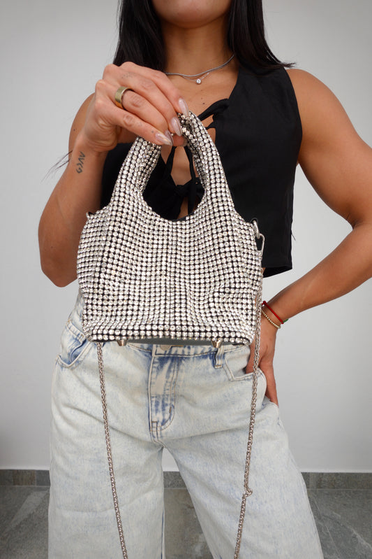 RHINESTONE STATEMENT BUCKET BAG